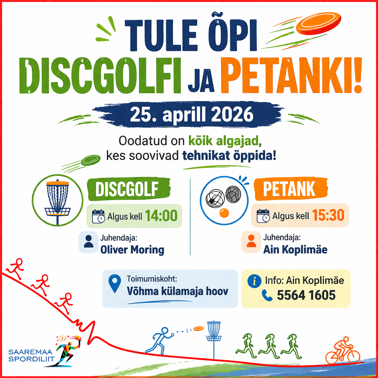 - Discgolfi algus kell 14:oo, juhendaja Oliver Moring