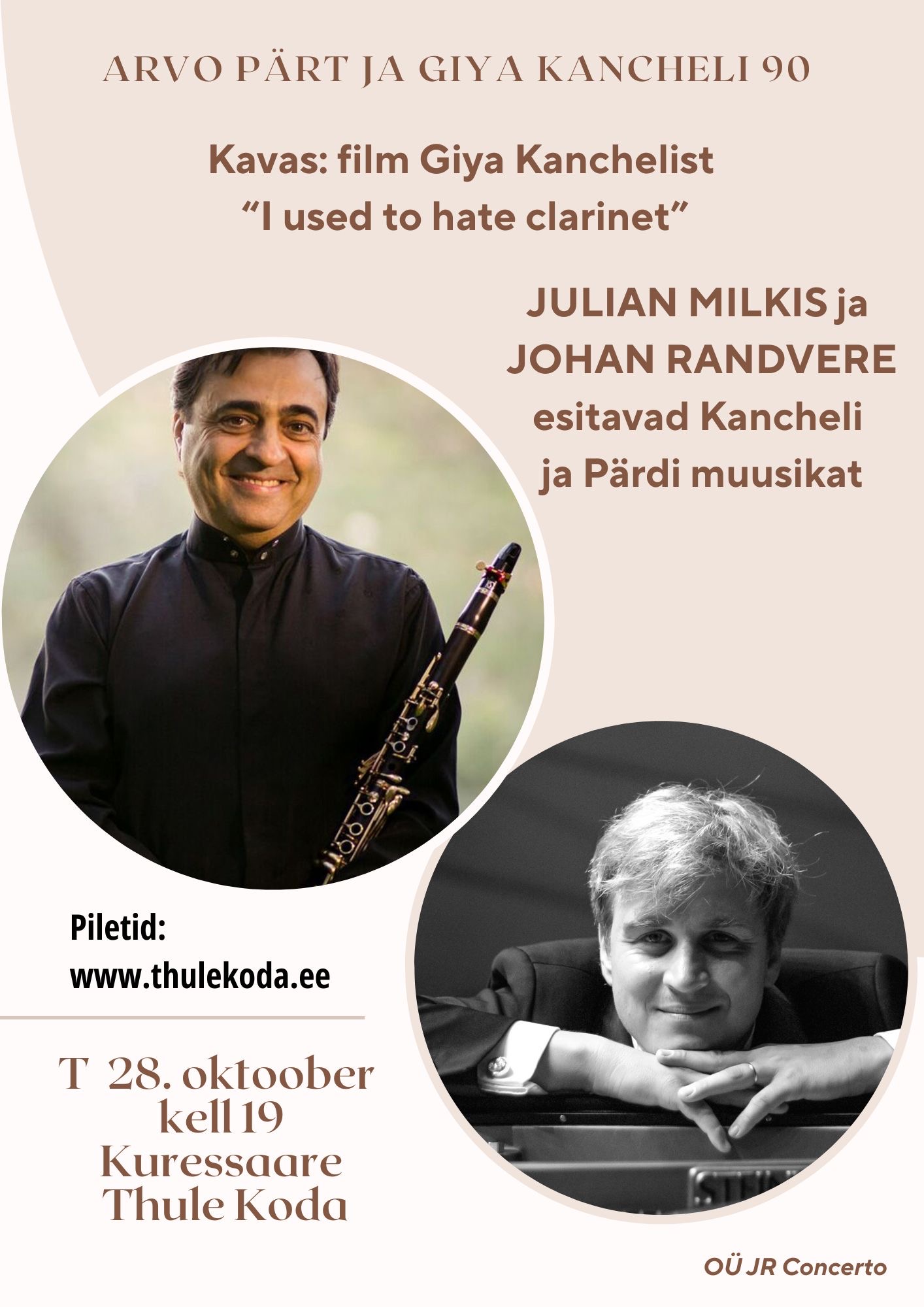 Maailma enim Giya Kancheli klarnetimuusikat esitanud artist Julian Milkis toob kaasa Kancheli lühifilmi “I use to hate clarinet” (“Ma kunagi lausa vihkasin klarnetit”, rež. Olga Antimony, 2020, 40 min). Peale seda esitavad Julian Milkis ja Johan Randvere Kancheli “Miniatuurid”, ning Kantšeli lähedase sõbra Arvo Pärdi teosed “Spiegel im Spiegel” ning “Variatsioonid Arinuška tervekssaamise puhul”.