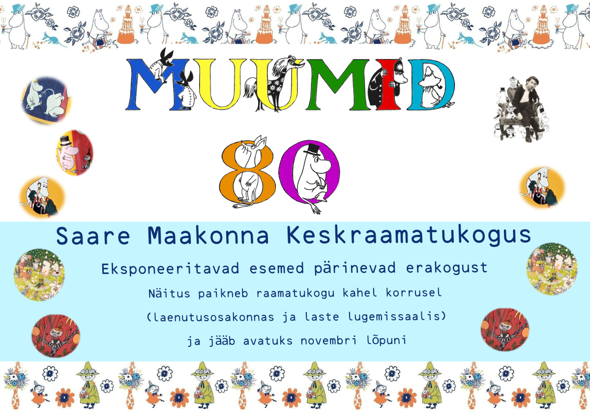 Näitus „Muumid 80“ paikneb Saare Maakonna Keskraamatukogu kahel korrusel (laenutusosakonnas ja laste lugemissaalis) ning jääb avatuks novembri lõpuni.