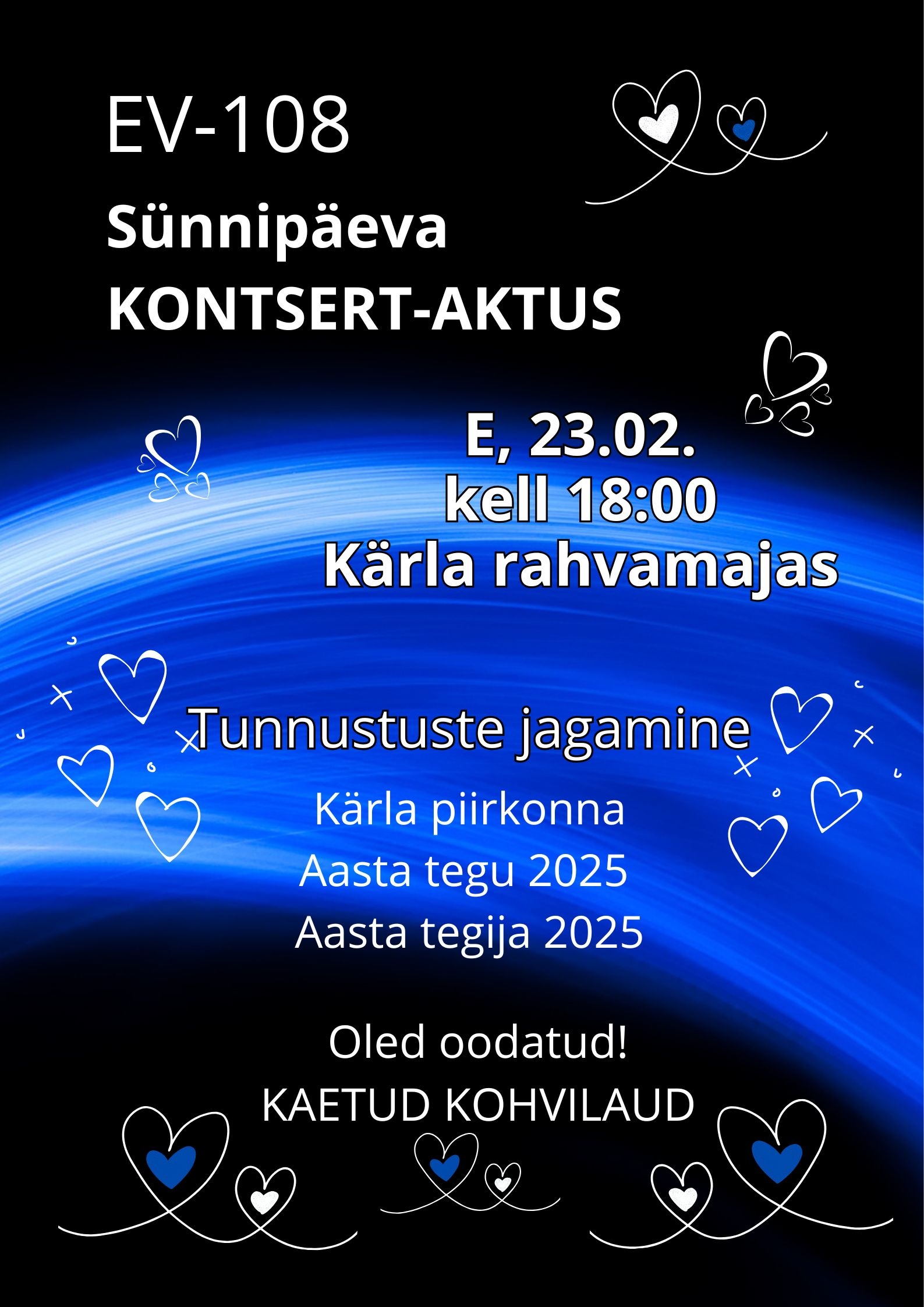 Pidupäevakõned, etteasted, tunnustatakse Kärla piirkonna Aasta Tegu 2025 ja Aasta Tegija 2025.