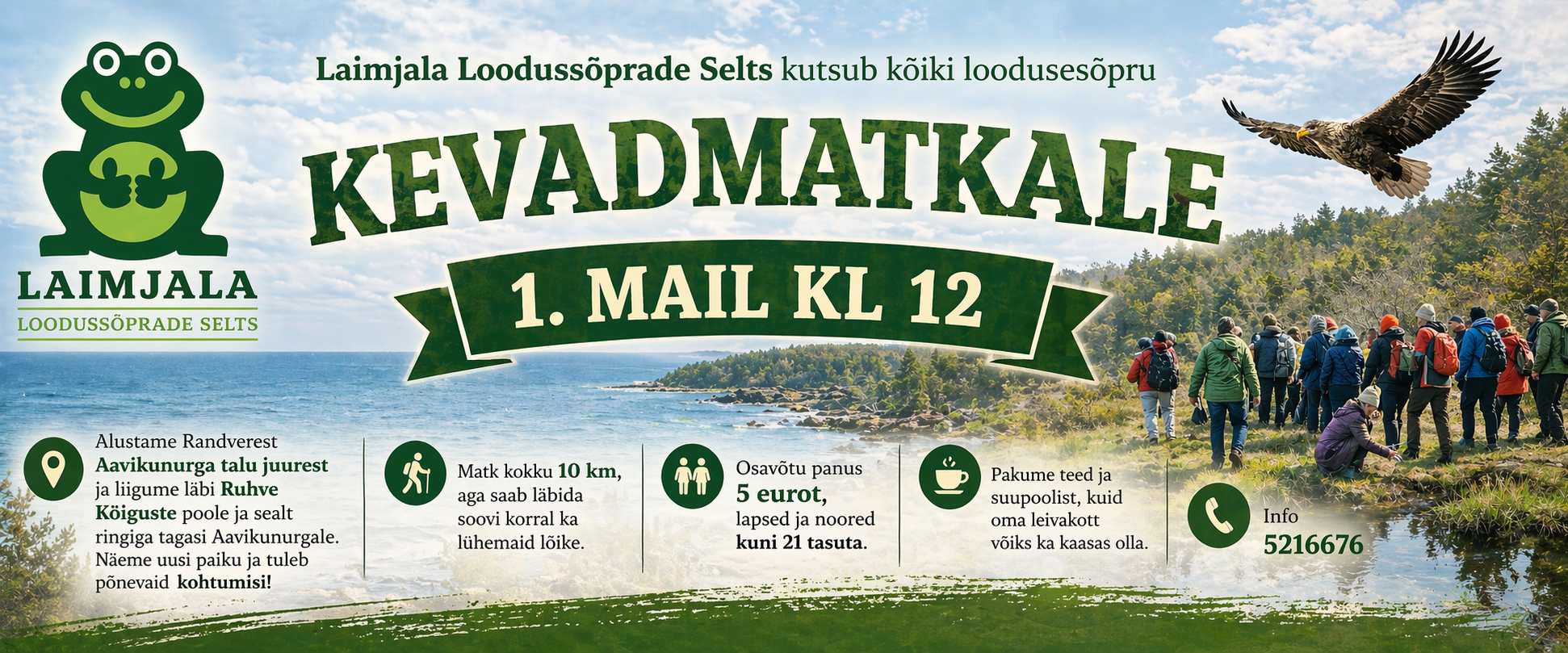 Laimjala Loodussõprade Selts kutsub kõiki looduse sõpru 1 mail kl 12