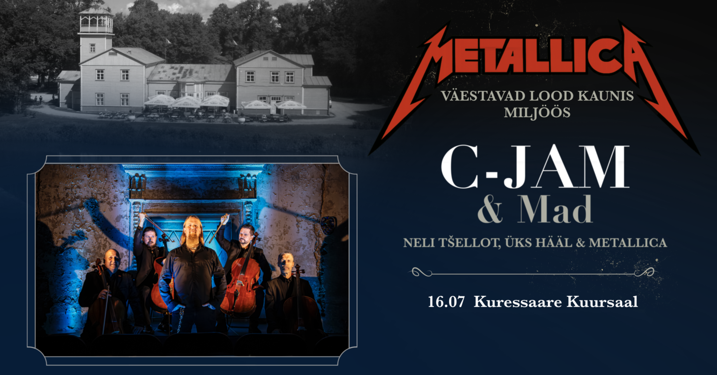 Tšellokvartett C-JAM on unikaalne kooslus meestest, kes ei karda avardada piire ega seada endale uusi väljakutseid. Nende kätes muutub tuntud muusika millekski täiesti uueks – millekski, mida peab kogema oma kõrvaga ja nägema oma silmaga. Mõte Metallica lugudega kontsertkava luua on meeste peas küpsenud juba aastaid – nüüd jõuab see lõpuks lavale.